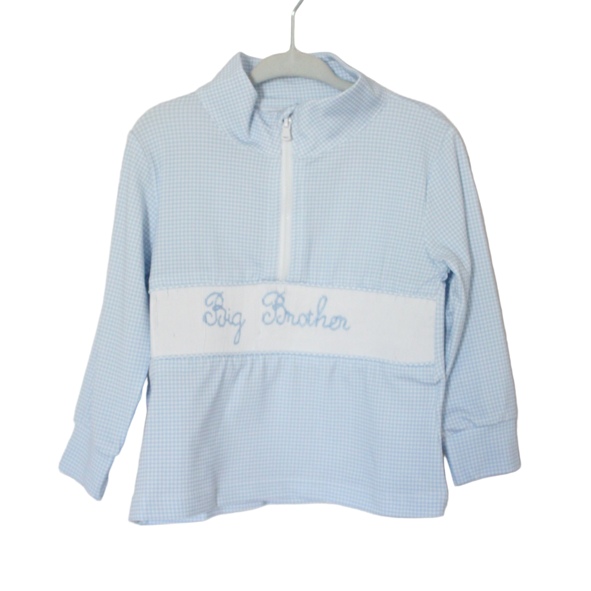 BLUE GINGHAM BIG BROTHER SMOCKED 1/4 ZIP PULLOVER