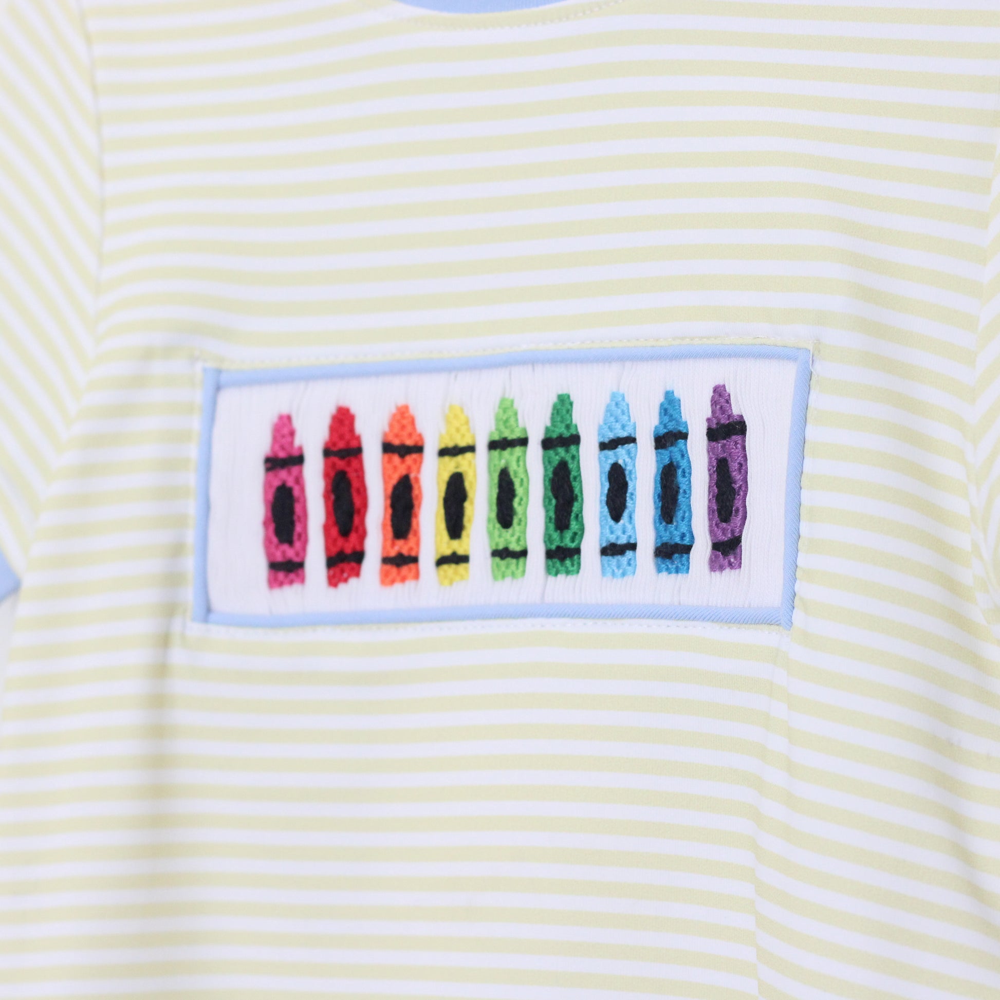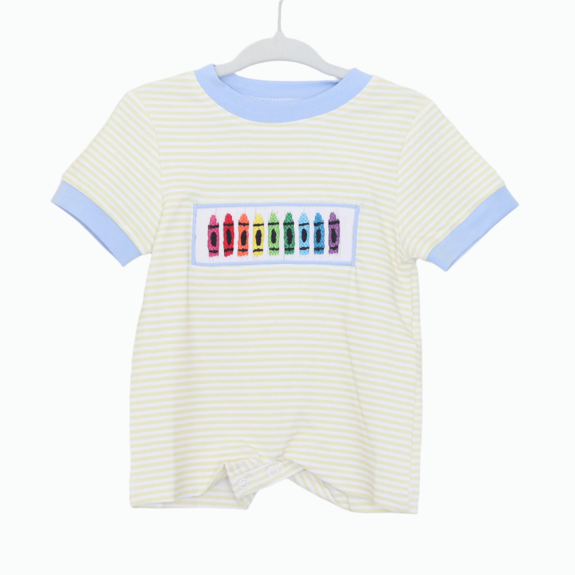 This Boys Smocked Crayons Romper combines charming style with playful comfort. Featuring delicate smocking and a vibrant crayon-inspired design, it’s perfect for little ones to explore their creativity while staying cozy. Ideal for everyday adventures or special occasions, this romper adds a touch of whimsy to any wardrobe.
