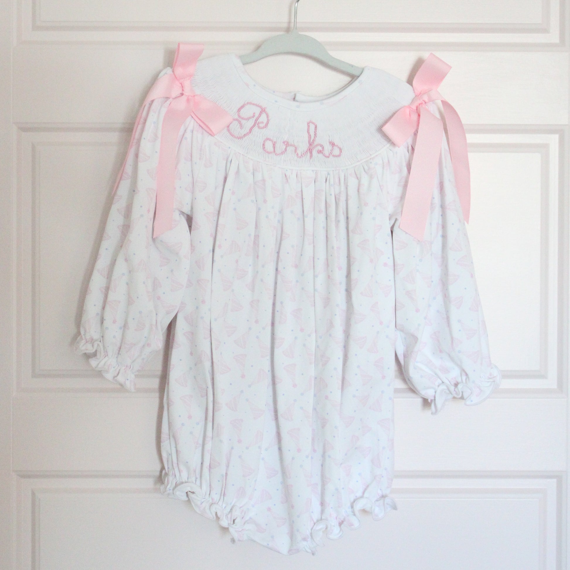 GIRLS BIRTHDAY NAME SMOCKED BISHOP BUBBLE
