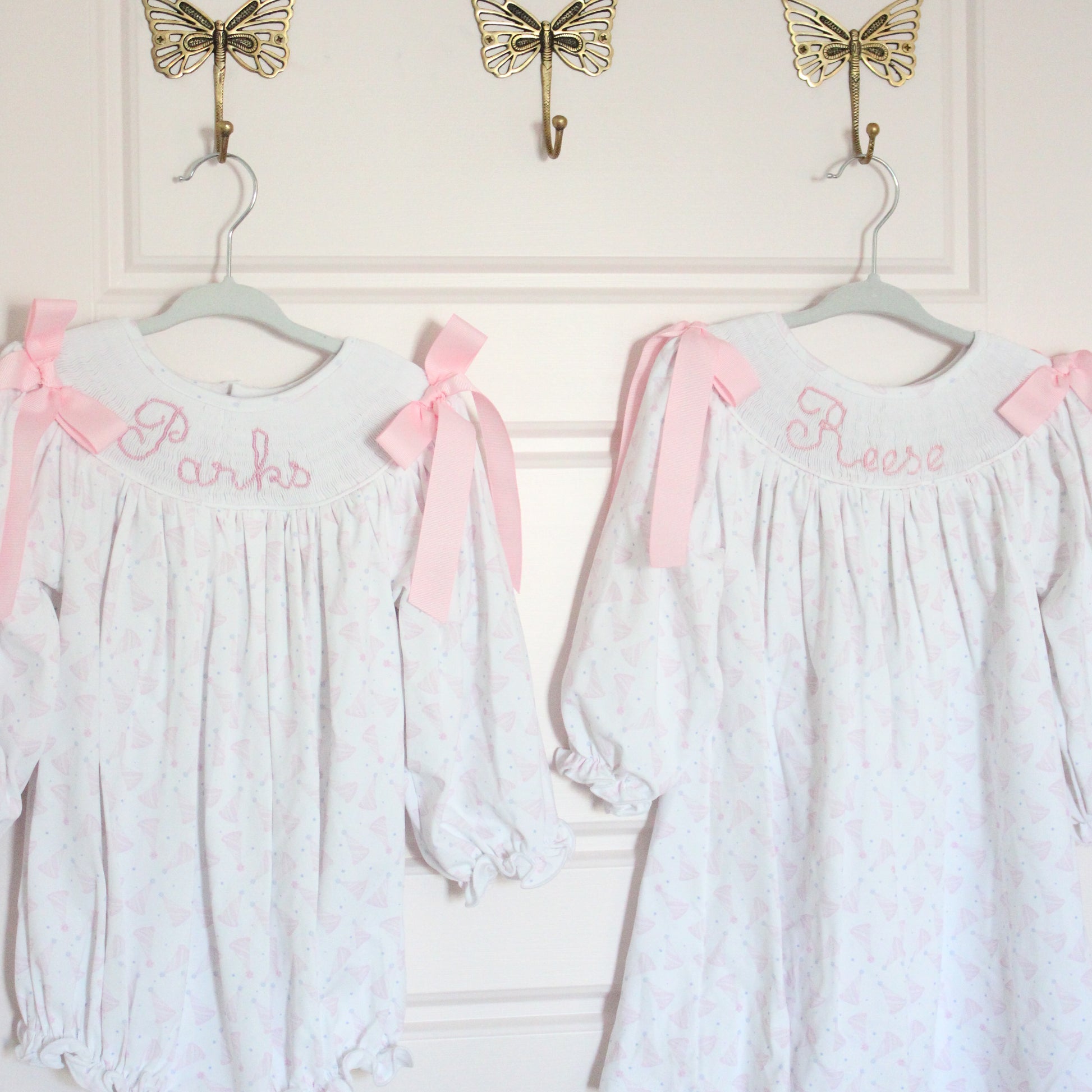 "Please note that these items are hand-smocked, and slight variations in lettering are part of their handmade charm. If you prefer perfectly uniform lettering, we recommend choosing a different style."