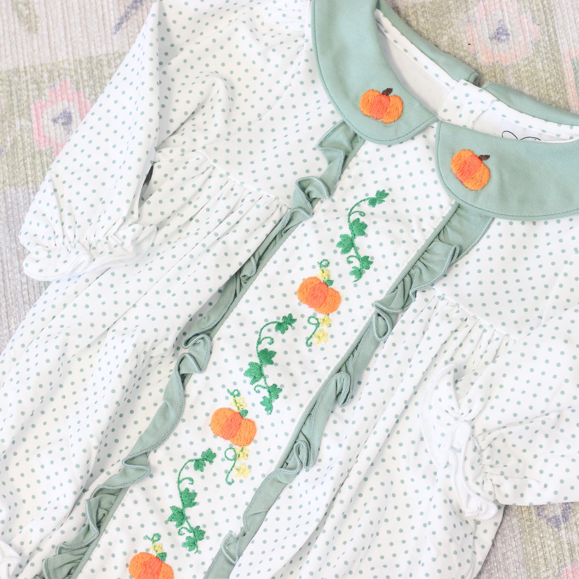 GIRLS GREEN BITTY DOT PUMPKIN VINE BUBBLE