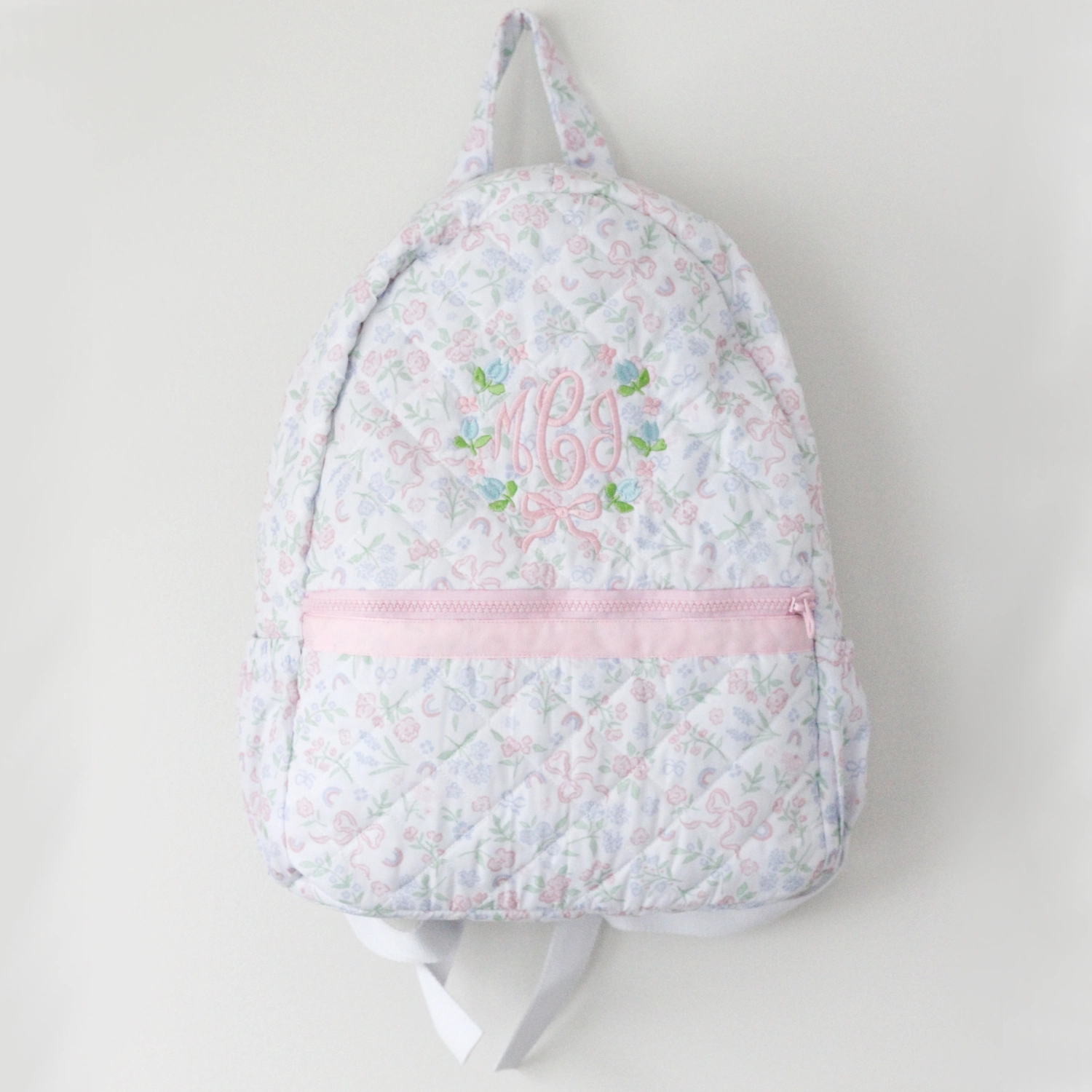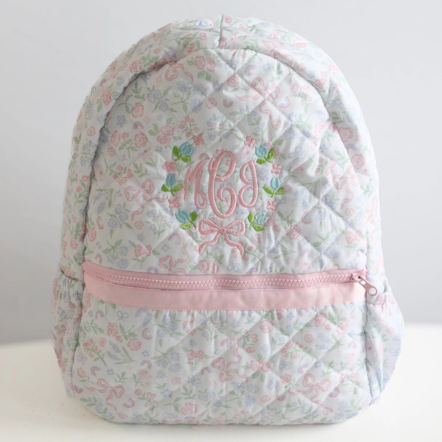 PASTEL FLORAL & BOWS QUILTED BACKPACK