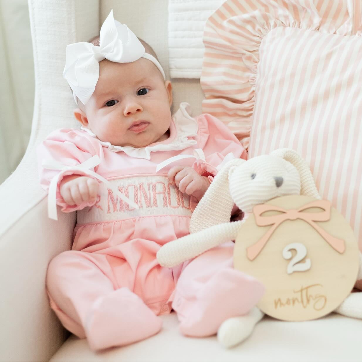 PINK KNIT BOW NAME SMOCK FOOTIE